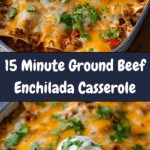 This 15 Minute Ground Beef Enchilada Casserole is a quick and comforting one-skillet meal made with seasoned beef, tortillas, enchilada sauce, and melted cheese. It delivers all the flavor of traditional enchiladas with none of the fuss.