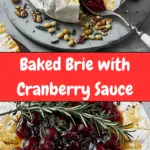 This Baked Brie with Cranberry Sauce is a warm, gooey, and festive appetizer topped with sweet-tart cranberry sauce, rosemary, and optional crunchy nuts. It’s perfect for holidays or elegant gatherings and comes together in under 20 minutes.
