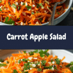 A crisp and refreshing carrot apple salad made with grated carrots, sweet apples, raisins, and walnuts tossed in a creamy yogurt dressing with honey, lemon, and cinnamon. This quick no-cook salad is naturally sweet, colorful, and perfect as a light side dish.