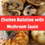Chicken Ballotine with Mushroom Sauce is a gourmet-style dish featuring chicken breasts stuffed with wild mushroom duxelles, gently poached, seared until golden, and served with a creamy truffle mushroom sauce. Perfect for special occasions or elegant dinners at home.