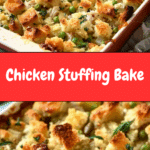 A cozy and satisfying Chicken Stuffing Bake featuring tender chicken breasts baked with a creamy sauce and topped with golden stuffing. Perfect for a comforting, no-fuss dinner.