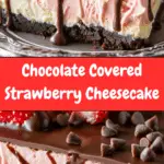 This Chocolate Covered Strawberry Cheesecake is a decadent dessert combining creamy cheesecake, a buttery graham cracker crust, and the indulgent sweetness of chocolate-covered strawberries. Perfect for any special occasion or as a treat to satisfy dessert cravings, this cheesecake is guaranteed to wow guests and satisfy your sweet tooth.