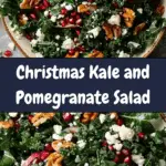A festive and colorful Christmas Kale and Pomegranate Salad featuring massaged kale, sweet apples, juicy pomegranate seeds, crunchy candied pecans, and creamy feta, all tossed in a maple Dijon vinaigrette. A fresh, flavorful, and nutritious side perfect for holiday gatherings.