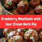 Cranberry Meatballs with Sour Cream Herb Dip a juicy, tender meatballs coated in a tangy-sweet cranberry chili sauce, paired with a creamy herb-infused sour cream dip—this recipe is my go-to for festive gatherings, game days, or any time I want a crowd-pleasing appetizer that’s full of bold flavor.