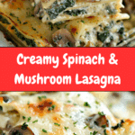 A rich and comforting vegetarian dish, this Creamy Spinach & Mushroom Lasagna layers earthy mushrooms, tender spinach, and a luscious ricotta-parmesan cream sauce between sheets of soft pasta. It’s a go-to for chilly nights, cozy dinners, or anytime I want a satisfying meatless option that doesn’t skimp on flavor.