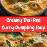 This Creamy Thai Red Curry Dumpling Soup is a rich, cozy one-pot meal featuring frozen dumplings in a flavorful coconut curry broth infused with garlic, ginger, and Thai red curry paste. It's a quick and satisfying dish perfect for chilly nights or when you're craving something soul-soothing with bold flavor.