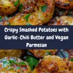 Golden, crispy smashed potatoes with fluffy centers, tossed in a rich garlic-chili butter and finished with savory vegan Parmesan. A bold, comforting plant-based side dish perfect for any occasion.