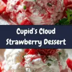 Cupid’s Cloud Strawberry Dessert is a no-bake, creamy treat made with layers of crushed cookies or graham crackers, a fluffy cheesecake filling, and strawberries tossed in jam and lemon juice. Light and elegant, it’s perfect for romantic occasions or easy entertaining.