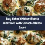 Easy Baked Chicken Ricotta Meatballs with Spinach Alfredo Sauce a juicy, tender chicken and ricotta meatballs are baked to perfection and then smothered in a rich, creamy spinach Alfredo sauce. This dish is hearty, high in protein, low in carbs, and naturally gluten-free. It’s a comforting Italian-inspired dinner that’s simple enough for a weeknight and special enough to impress.