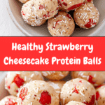 These no-bake strawberry cheesecake protein balls are a healthy, high-protein snack made with almond flour, protein powder, and real freeze-dried strawberries. They're creamy, naturally sweetened, and perfect for on-the-go energy or post-workout fuel.