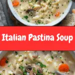 Pastina refers to tiny pasta shapes, most commonly the star-shaped kind used in this soup. It’s a classic ingredient in Italian comfort food, especially popular in meals for kids or when someone’s feeling sick.