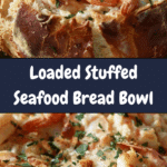 A warm, crusty sourdough bread bowl brimming with a rich, creamy seafood filling — this Loaded Stuffed Seafood Bread Bowl is everything I want in a comfort food. It’s packed with juicy shrimp, tender crab, and gooey cheese, all baked to perfection. Whether I serve it as an appetizer for guests or turn it into a cozy dinner, it’s always a crowd-pleaser.