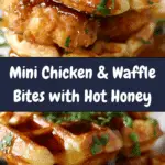 Mini Chicken & Waffle Bites with Hot Honey are a quick, crowd-pleasing appetizer made with crispy chicken nuggets stacked on mini waffles and drizzled with a sweet and spicy hot honey glaze. Perfect for parties, brunch, or game day snacks.