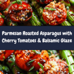 Parmesan Roasted Asparagus with Cherry Tomatoes & Balsamic Glaze a crisp-tender asparagus spears roasted to perfection with juicy cherry tomatoes, a sprinkle of parmesan cheese, and a tangy balsamic drizzle—this vibrant side dish brings elegance and flavor to any meal. I love how simple yet sophisticated it feels, making it a great addition to weeknight dinners or holiday spreads.