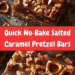 Quick and easy no-bake salted caramel pretzel bars with a crunchy base, gooey peanut butter caramel, and rich chocolate topping. Perfect for a sweet treat without the oven.