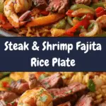 I bring together the bold flavors of juicy seasoned steak, tender shrimp, and sizzling fajita vegetables over a bed of fluffy Mexican rice in this Steak & Shrimp Fajita Rice Plate. I love how this surf-and-turf combination feels both comforting and impressive, making it perfect for a weeknight dinner or a special weekend meal.