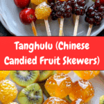 Tanghulu (Chinese Candied Fruit Skewers) a crispy, glossy, and sweet — Tanghulu is a classic Chinese street food made by dipping fresh fruit into molten sugar, which hardens into a glassy, crackling shell. Each bite delivers a satisfying contrast between the crunchy candy coating and the juicy, tangy fruit inside. Traditionally made with hawthorn berries, I like using strawberries, grapes, or even cherry tomatoes for a vibrant twist.
