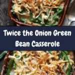 Twice the Onion Green Bean Casserole is a delicious twist on the classic holiday side dish, featuring double the amount of crispy French fried onions for extra crunch and flavor. With a creamy mushroom base and tender green beans, it’s a comforting favorite perfect for Thanksgiving or cozy dinners.