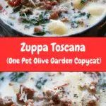 Zuppa Toscana (One Pot Olive Garden Copycat) a cozy, creamy bowl of Zuppa Toscana is just what I crave on chilly days. This one-pot wonder combines savory Italian sausage, crispy beef (or bacon), tender potatoes, and kale in a rich, comforting broth. It’s a spot-on homemade version of the Olive Garden favorite—perfect for a quick weeknight dinner or a cozy weekend meal.